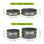 Including four sets: cauldron , pot , large frying pan, small frying pan.(With 2 spoons, 3 plastic bowls)