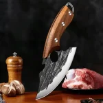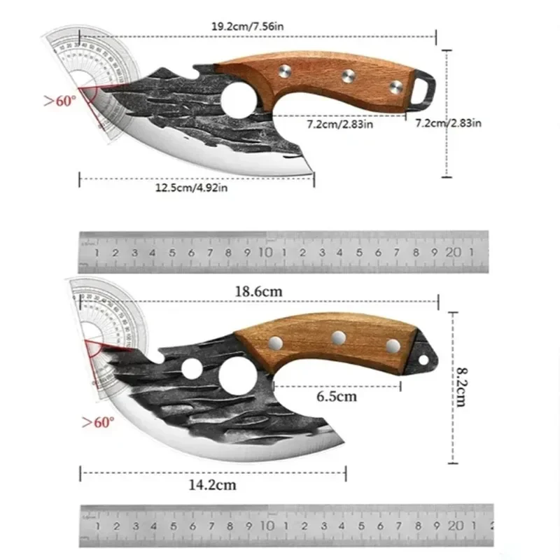 1. Double round hole design: The feature of this boning scimitar is its double round hole design. This design allows the knife to be more flexible when boning or handling meat, improving cooking efficiency.